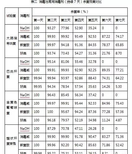?。?)模擬消毒池實(shí)際狀況,將各試驗(yàn)消毒劑敞開暴露在室外,每天重復(fù)進(jìn)行上述試驗(yàn),共7天,記錄試驗(yàn)數(shù)據(jù),分析試驗(yàn)結(jié)果。
