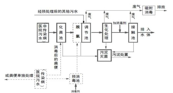 對(duì)于已建設(shè)污水處理設(shè)施的定點(diǎn)醫(yī)院、集中隔離觀察點(diǎn),出水衛(wèi)生學(xué)指標(biāo)穩(wěn)定達(dá)標(biāo)后,排放至城鎮(zhèn)污水管網(wǎng);未建設(shè)污水處理設(shè)施或設(shè)施不完善的,污水需進(jìn)行預(yù)消毒,依托鄉(xiāng)鎮(zhèn)污水處理站(農(nóng)村污水處理設(shè)施)或采取移動(dòng)式醫(yī)療污水處理設(shè)施處理達(dá)標(biāo)后排放。